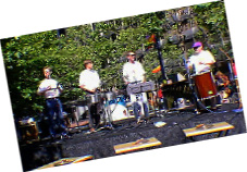 Musical fusion in Heidelberg was clearly demonstrated when the Freddy Wonder Combo (photo left,,) played funk, rap and music by Carlos Santana. Percussion Plus (photo right ,) of Heidelberg played music by Scott Joplin as well as Brazilian samba, exhibiting a range of influences.