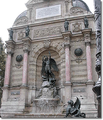 Thus it was on Thursday that I walked into Les Deux Magots and was surprised that it was not all noisy conversations and clatter of plates. In fact, the atmosphere seemed to be remarkably calm inside. Like Brasserie Lipp it had the dark wood and polished brass, but it also had comfortable tables with some space between them. There was also more light. Of course the wooden statues on the wall were unmistakable and curious. I didn't see "Bud" there with his husky blond companion. At the next table a young Asian woman was writing notes on postcards; that was the only sign of overt tourism. A waiter came by and took my order without much ado or attempting to correct my pronunciation. I ordered a vodka martini. "Blanc?" he asked. I said "Qui." I didn't quite understand at the time but should have. Be was referring to the vermouth. It came shortly in a tall glass with two green olives skewered on a stick handing on the side of the glass. It was sweet, indicating a lot of Vermouth. I don't think it was shaken or stirred, just poured into the glass cold. It was okay but not great. I have been spoiled by San Francisco cocktails and don't expect much when I go other places. In general I have found that not expecting much is good policy. Disappointment is then minimal. I only drank part of the drink, as I didn't want to arrive at Brasserie Lipp drunk, paid and left. As the previous day, I walked down Saint Germain a block, crossed, then backtracked to Brasserie Lipp. I was earlier than I had been the day before. As I enter, I see that the place is packed. I asked the Maitre d' if it were possible to get a table for one. "Mange pour un, est-il possible?" I asked "Qui Monsieur, quelques moments." A few minutes later he was pulling out a table by the wall. It was one of a long line of tables, each with white table cloth and butting up against each other, along the far wall of the restaurant. As he pulled out the table I squeezed inside. I had been feeling uncomfortable about the crowd while waiting but it was now that I began to feel really uncomfortable. There was a couple on my right side finishing up with dessert and coffee, a single woman on the left whose food hadn't come yet. Eating lunch alone is okay with me but eating lunch alone in a crowd is not my ideal. You want some space. I think I was actually at the tail end of the lunch hour, as people began to leave. The couple on my right took the liberty of pulling out their own table to escape, and shoved it into my table, dragging the table cloth and knocking an empty wine glass off onto the floor with a crash. The woman smiled like a kid who has done something cute. One of the waiters, unsmiling, showed up with broom and dust pan and started sweeping. My table was restored and my order was taken. Briskness seemed to be the predominant style. Briskness and professionalism. Wine showed up shortly, soon thereafter my food order. The waiters wore tuxedoes and everything seemed to be clockwork. One of the waiters, the one who had cleaned up the mess and restored my table, was a big commanding-looing fellow with a short goatee; the other was a younger man who reminded me somehow of a duck. He seemed to be making humorous remarks from the corner of his mouth as he waddled about with plates of food. I suppose that took the pressure off. Everything seemed to be a well practiced routine. The woman on my left began talking on her cell phone as my order showed up. I had ordered the roast chicken, poulet rôti; it showed up with frites, or fries, as expected. In fact every plate of food I saw had frites on it. Now there is nothing wrong with frites. I like them. But I was beginning to feel like everything was just a well executed formula. With the crowd of people, the waiters running around like robots, the noise, and the woman on the cell phone, I began to feel like "Bud," a guy just fulfilling a mission, so that I could say, "Sure, I been there." Maybe it would be better to say, "Nah, never heard of the joint. Sounds like a dump to me." I let my waiter pull out my table and left without breaking anything. I turned on my cell phone to see if there were any messages—there weren't—then turned if off again. I crossed the street again at Place Saint Germain des Prés and headed west on Boulevard Saint Germain. A few minutes later I was entering Le Procope through the alley and feeling much better. I was seated immediately in a little room across from the kitchen. There were four tables in the room and only one couple there. I noticed that all the wait people were young. My waitress was a young woman with long curly hair and darting eyes who seemed to be flirting with one of the waiters between taking orders and delivering them. I liked her better than the duck back at Brasserie Lipp, and she got my order straight: Sorbet au Chocolat Mi-Amer et son Macaron "Maison" and a cafe au lait. The sorbet was made at the restaurant and good. I was unmoved by the coffee, but more on Paris coffee later. When my waitress came by I said, "Il est très historique ici." "Qui, Il est très historique." But I didn't get anything more out of her. She went back to teasing the waiter. They seemed like kids working in an amusement park. Since I was near the kitchen door, I began to watch when it opened. I was curious to see if I could spot the filth that George Orwell describes in French restaurants in Down And Out In Paris And London. I didn't; it looked pretty clean. I've worked as a plongeur, or dishwasher, in restaurants myself and have seen less than ideal conditions inside the kitchen but nothing to match Orwell's description. Okay, now I could honestly say, "Yeah, I been there." But now I wanted to be able to add, "But let me tell you about a little place off ..." I had a plan for the next day. But I also wanted to go to a pen store—they are fabuleux in Paris, right?—and pick up a French copy of Candide by Voltaire. I had been reading an English translation and wanted