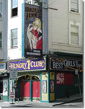 Caen nearly died laughing, says Enrico. He wrote a quarter of a page about Sahl, and the Hungry i then really took off. But with big crowds now showing up, the fire department was ready to shut the Hungry i down because it did not have the required exits. Enrico talked them out of it, saying he was in the process of building more exits. In the mean time, however, he rented more space over on Kearny and Jackson—where the hole is, and has been for the last decade—and moved the Hungry i moved over there. There is still a Hungry i in