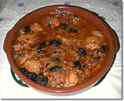 This was beautiful food; this was lovely food. And I, who am from San Francisco, where only three things are holy—food, booze, and books—was most pleased. The Deity, if the Deity eats food, would have been pleased. I was also beginning to pick up on the nature of sly gentle Sandra. She had steered me clear of the mediocre places while peaking my appetite. Then just at the moment when my good humor might have gone bad, she comes up with the most wonderful treat to be found. Afterwards she looked pleased with herself, as only a sly gently person can. She also grabbed the bill and refused to let me pay. This was something new to me: A woman who actually wanted to pay the bill when it was large. I was definitely in another country. The next day found us again in France with Sandra, at a castle in Foix. The castle was closed, however, so we proceeded to a restaurant in town, where we had "Martinis," mounds of fries, steaks, and a lot of red wine. Closed castles and fortresses are the best kind. They leave you with more time for lunch. On the way up from Barcelona two days before I had noticed the construction cranes. They were being used for building houses and they seemed to be everywhere. I also noticed them on our trip to Foix. Later in the evening at the wine bar in Puigcerda, Mariona, another of my daughter's wonderful friends, explained it to me. It's the old story of development and second homes. It seems that people with money from Barcelona like to have a second home up in sky country. It's like what you see in California in places like Big Sur and Mendocino. Mariona said that no one liked it but there was no way to stop it. I said that there were laws to protect sensitive places and protesting development was almost a way of life in California. "We are about thirty years behind you," she said. In Cerdanya, the region around Puigcerda, there are no laws to help protect the land from development. Money rules. On Wednesday we take it easy, resting up for a dinner that Sandra is preparing. She wants to show me a variety of local dishes. At three we go over to La Vila Restaurant in Puigcerda for late lunch, then rest our stomachs for Sandra's feast. I have Orada al forn a l'estil casero, which is a fish dish with tomato and onion topping and thin-sliced potatoes below. I think it is the first time I have eaten anything but beef and it is a nice change. There is only one couple in the restaurant and we are the only customers by the time we leave. Conversation is easy and natural, it flows like the wine, and with these long meals I'm losing any ordinary sense of time. It is merely lunch time or dinner time, starting with an aperitif and ending with coffee. At about 8:30 Antonio, quick, nimble, and the perfect gentlemen, comes by to pick us up for the dinner at Sandra and Toni's. They have an apartment in the newer part of Puigcerda. Sandra is in the kitchen when we come in and Toni hands us all "Martinis." Then Sandra comes out and offers both cheeks for kissing. Toni, strong as a bull and of melodious voice, smiles and does the same. I like the open demonstrative nature of these folks. They have a big wood dining table in a nook of the living room. The apartment is very beautifully and carefully furnished. It is not cluttered like my own. We take our places at the table and the food begins to arrive. There are so many plates that I can hardly remember them. Plates with thinly sliced sausage, plates with anchovies, plates with olives ... There was of course beautiful rich red wine. But the glory of the evening was the main course: Pollo con cirvelas, peras, pinones, and tomatos—chicken with prunes, pears, pine nuts, and tomatoes. Sandra should have her own restaurant, Restaurante Sandra de Cerdanya. It would give it at least five stars.