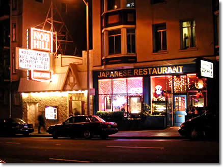 She told me about two guys who came in the other day and ordered drinks. "The one," she says hesitantly, "says he wants a ..." She struggles to say it, then does "... 'cocksucker.' I tell him, 'you get out of here; we're not that kind of place.'" "No, no, lady," he says. "It's a drink. I'll tell you how to make." "I'm sorry," she says, "but we don't make those kind of drinks. We're a decent place." "Well, then, give me a blow job," he says. "You get out of here," she tells him. We're ..." The latter is a drink too. He offers to tell her how to make it. Again, she tell him they don't make "those kind of drinks." I'm not sure how it ended. I tell her about my Chinese friend, Xiao Fan, ordering "Sex on the Beach" down at Le Central. That is a risque-sounding cocktail if there ever was one. The name is a shocker but the drink itself is not even memorable. All the pleasure, if there is any, comes from saying "Sex on the beach" when you order it. My Chinese friend stumbles over English but she had "Sex on the Beach" down perfectly. I think she had been practicing. Now if I could only get her down to the beach! Turns out the ocean scares her. Now there is a lot more than bars on Bush Street. In fact there is just about everything in one form of another. If you want restaurants, there are restaurants of every kind. Just across the street from Chelsea Place is the renown Masa's. Go up the street a few blocks and on the other side you have VC's Vietnamese Sandwich shop. At Masa's you will pay $125 a person or more; at VC's you can get a Vietnamese sandwich for $2.95 with about the same nutritional value as poulet d'or avec haricot vert. Or splurge at VC's and get Charbroilded Pork Vermicelli for $5.95. Then there is Jasmin's just down the street, offering both Mexican and Korean fare. Some swear by it. Some say Uncle Vitto's is the
