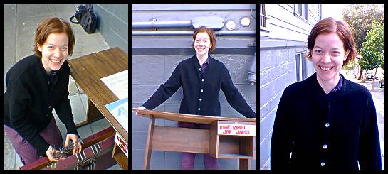 It was a Sunday afternoon, sunny. Exiting the posh organic grocery store on California Street, the one I've affectionately dubbed "Whole Paycheck," I was carrying two full brown bags by their trendy handles. After walking less than one block in the direction of Fillmore Street, I saw them: A well-dressed woman in her late 50s, a younger man in baggy shorts and a T-shirt, and five or six large black garbage bags filled with such potentially attractive trash that I put my overpriced grocery bags down in the stream of the runoff from the building manager’s hose and dived in. "I can’t believe anyone would throw this stuff away!" My greedy noises, along with the grunts and wheezes made by three people bending over for scraps, drew the following comment from the stereotypical building manager, a short, greying, heavyset man in his late fifties: "That’s from the girl upstairs. She’s getting married." Note to self: When starting new life, remember to throw out the old. But who needs to do that when you’re already living in the company of Kenneth Cole, Donna Karan, and Calvin Klein? By the time I picked up my soggy groceries and staggered home, I had an unopened box kite under my arm and a leather satchel filled with size-9 designer shoes over my shoulder. I don’t wear size-9 shoes, but the good people at Buffalo Exchange on Polk St. understood this and, after I had waited in the "buying" line for half an hour, forked over twenty-two dollars and change for my efforts. My thoughts turned back to my fellow scavenger, the well-dressed woman I’d trailed behind for two blocks until she let herself and her loot into a late-model Audi. What was her trash-picking motivation? Not twenty-two dollars, I’d bet. Maybe the thrill of finding something for nothing -- or, simply, finding anything at all -- was enough to keep people going back to the curb. I thought of all the objects I’d grabbed or seen up for grabs during my five years as a San Francisco resident: clothes, curtains, a pair of skis, a kitchen cabinet. Bookshelves or good chairs tend to get snapped up immediately, but I’ve seen perfectly decent dressers warp in the rain for lack of a rescuer, and outside my Pine Street apartment a brown couch has been soaking up rain for weeks. On a day when its cushions were dry enough to be sat upon comfortably, I chose the center one as the appropriate spot from which to snag passersby for their trashy opinions. First and foremost, the rescued object must be able to "pass" for purchased: "Not broken or filthy," said Jessica, a grinning, twentysomething blond hipster flaunting dark roots. Her other concerns? "Will it fit in my crappy apartment? Do I like it?" Snorting, "Oh, yeah!" when I asked her if she’d ever picked up anything off the street, Jessica has scored "bookshelves ... chairs ... occasionally clothes or shoes." "What kind of clothes?" "Clean ones." Jeff, a clean, well-pressed man who looked to be in his late thirties, said he "never really" picked up anything off the street except on Big Trash Night. He took a good look at the skanky couch I was sitting on and noted, "I guess that’ll be here until the next one, huh." Big Trash Night -- the night on which the mountains of furniture and cardboard boxes at the curb make it look as if whole neighborhoods are moving out at once -- is still somewhat of a hazy legend to me, like the return of a long-lost comet. I know that it happens, and that it happens at certain recorded intervals, but I, personally, never know the exact moment at which walking outside will afford me a panoramic view of bedsprings, dressers, and other people’s early-eighties Polaroids. Suddenly curious about the exact date of the brown couch’s exit, I conducted a fruitless search through both the World Wide Web and the white pages. I did, however, find a City phone number for "SOLID WASTE" (554 -3400) and an "emergency" number for the report of "Abandoned Refrigerators and Freezers" and "dumped debris." Since my situation was dire indeed, I dialed in to report the soggy couch. The "out of service" message I got left me free to extrapolate that when the garbage is good, San Franciscans can pretty much take care of it themselves. |