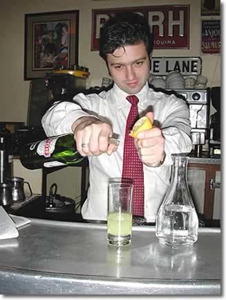 Down the street in Claude alley is Cafe Claude. I popped in there on day three of the new year to see what bartender Chris James was up to. I was no longer feeling quite so morbid. We talked Pastis, then he mixed one. I asked him what he thought lemon might do for it. He cut a lemon in two and squeezed in a table spoon or so. The drink came alive, and the lemon cut the licorice flavor down to size. The experience was inspirational. The lemon transformed something, well, not so good, into something lovely. It won't bring you out of a deep depression but it might make you feel a little better if you're down. Its worth a try, honey.